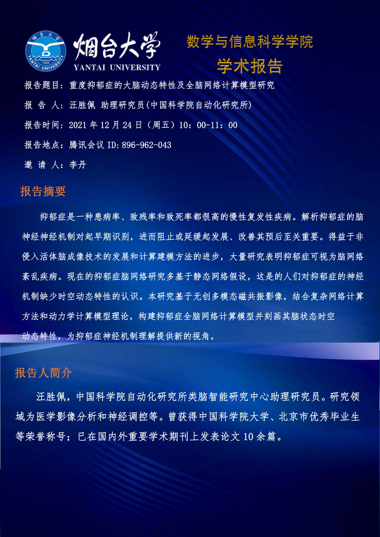 学术报告-汪胜佩 助理研究员(中科院自动化研究所)