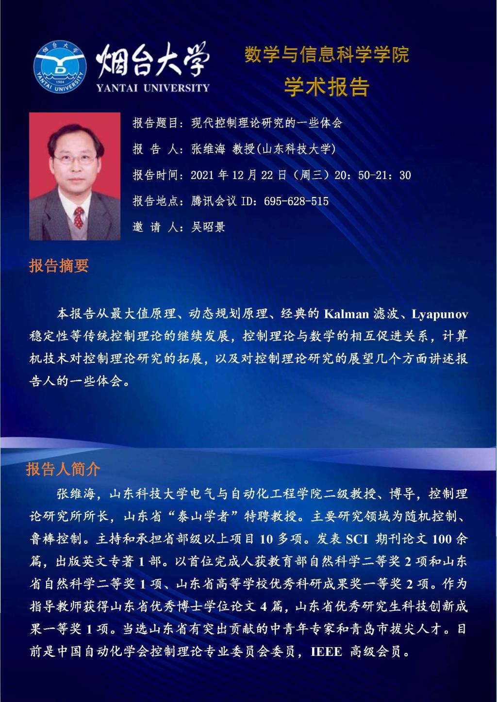 学术报告-张维海 教授(山东科技大学)