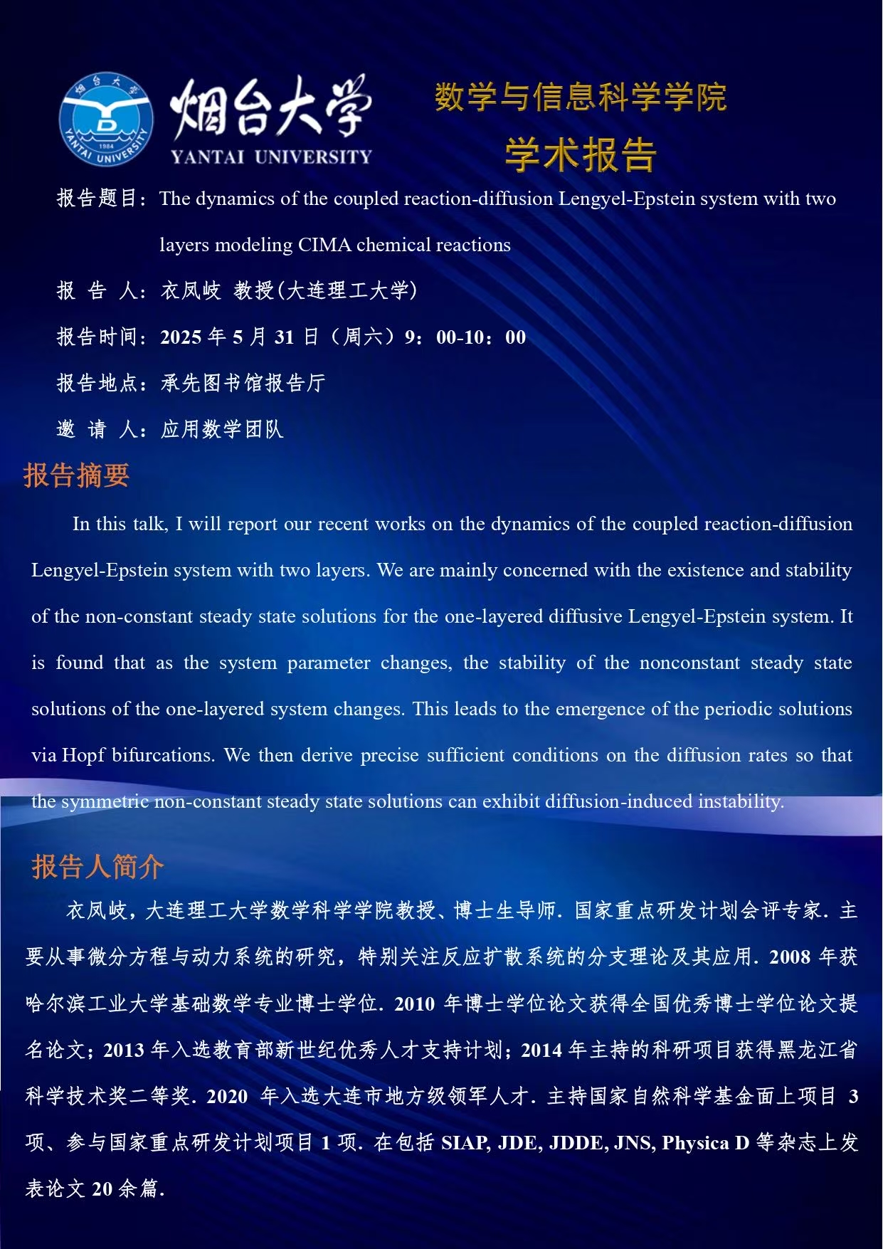 学术报告--衣凤歧 教授(大连理工大学)—20250531