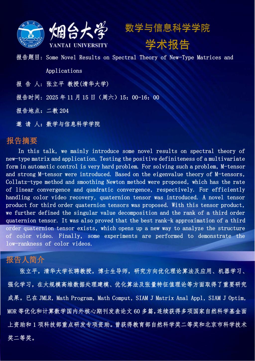 学术报告--张立平 教授(清华大学)—20251115