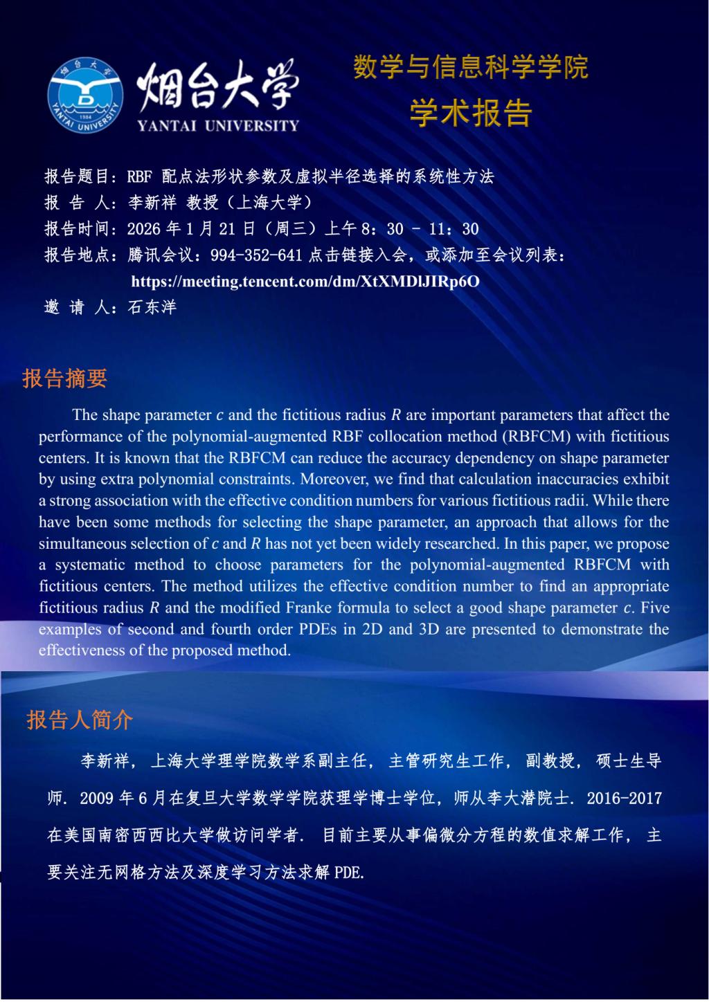 学术报告--李新祥 教授(上海大学)—20260121