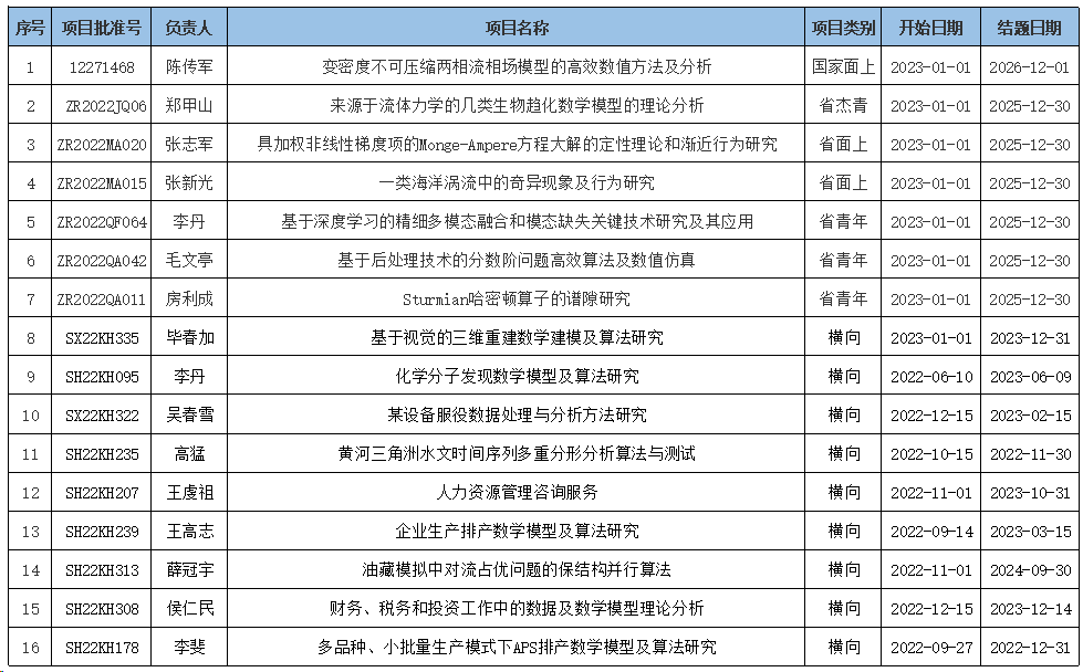 2023年立项科研项目